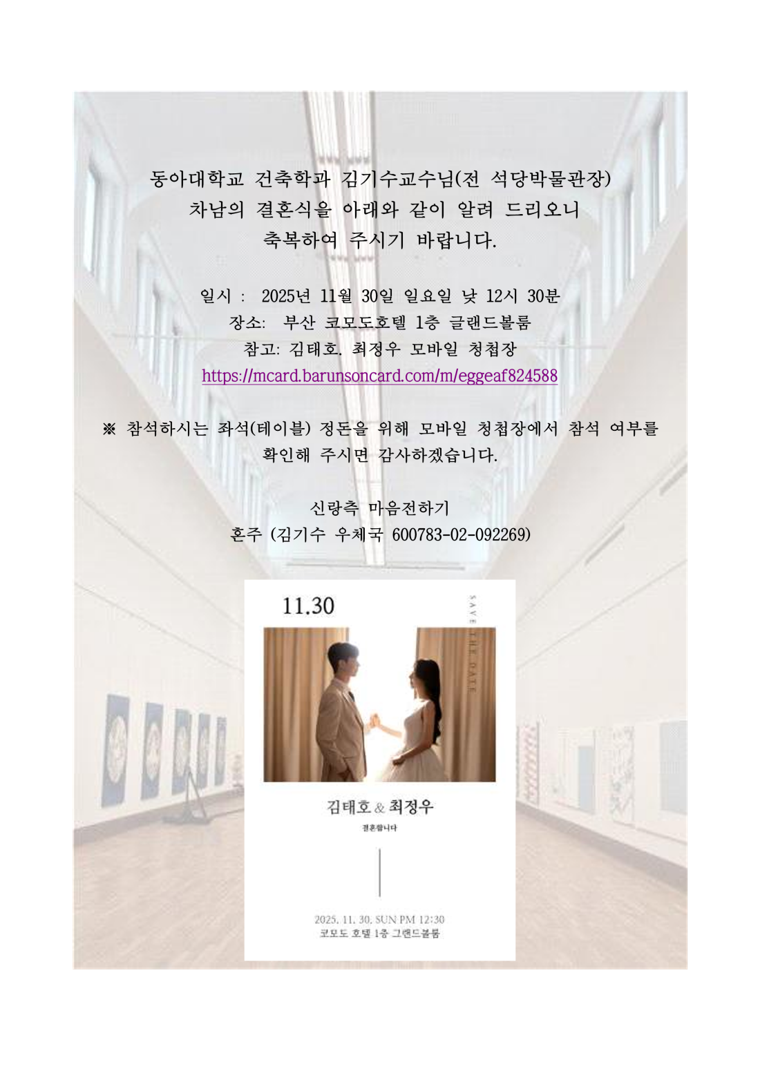º» ÇÐȸ ±è±â¼ö ȸ¿ø(µ¿¾Æ´ë ±³¼ö) ÀÚ³à È¥»ç°¡ ÀÖ½À´Ï´Ù. ȸ¿ø ¿©·¯ºÐÀÇ ¸¹Àº ÃàÇÏ ¹Ù¶ø´Ï´Ù.