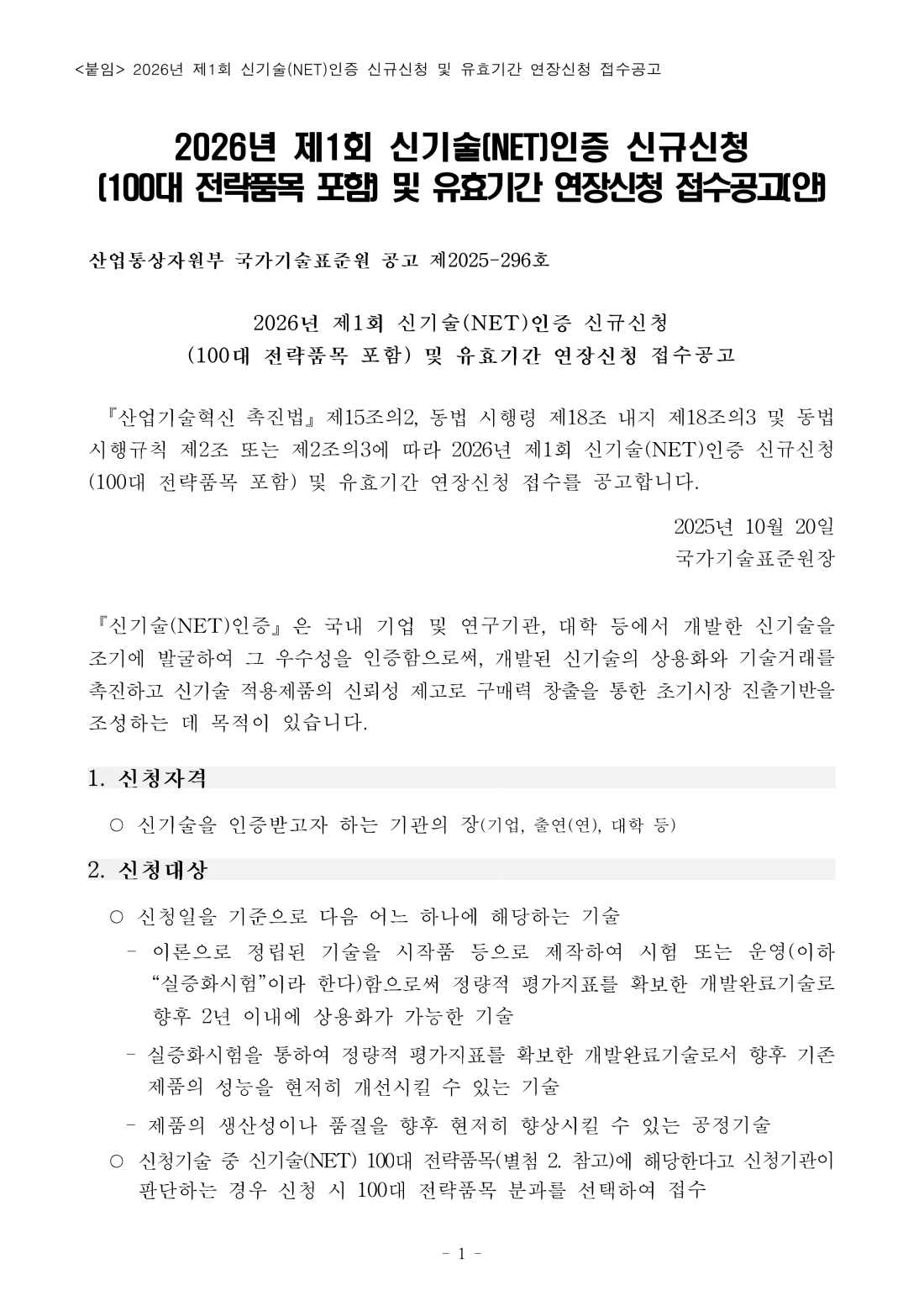 2026³â Á¦1ȸ ½Å±â¼ú(NET)ÀÎÁõ ½Åû¾È³» °øÁö