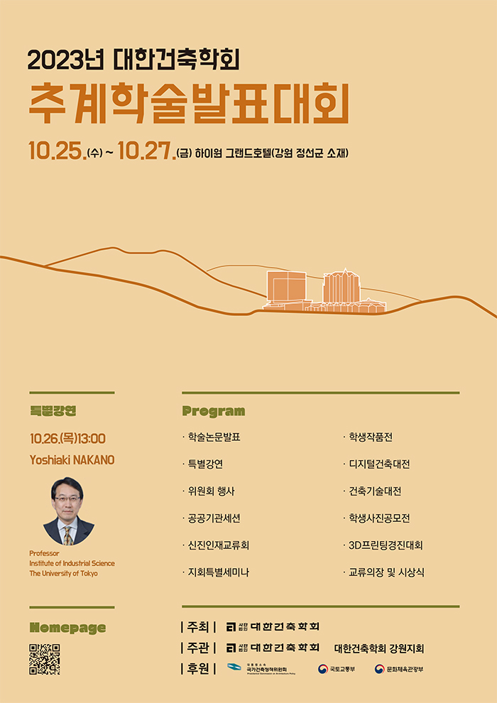 - Çà»ç³»¿ëÇмú³í¹®¹ßÇ¥/ Ưº°°¿¬(´Ù´Ï¿¤ ¸®º£½ºÅ²Æ® °ÇÃà°¡, ±èº´¿¬ ¼¿ï´ë ±¹°¡¹Ì·¡Àü·«¿ø ¿øÀå)/ À§¿øÈ¸ Çà»ç/ °ø°ø±â°ü¼¼¼Ç/ ½ÅÁøÀÎÀç±³·ùȸ/ ÁöȸƯº°¼¼¹Ì³ª/ ¿¬ÇÕÇмú´ëȸ/ ±³·ùÀÇÀå ¹× Çмú¹ßÇ¥´ëȸ½Ã»ó½Ä/ Àü½Ã(¿ì¼öÁ¹¾÷³í¹®Àü, °ÇÃà±â¼ú´ëÀü, Çлý»çÁø °ø¸ðÀü, 3DÇÁ¸°ÆÃ°æÁø´ëȸ, Á¦4ȸ ¹Ì¼úµ¿È£È¸Àü ¿Ü)
