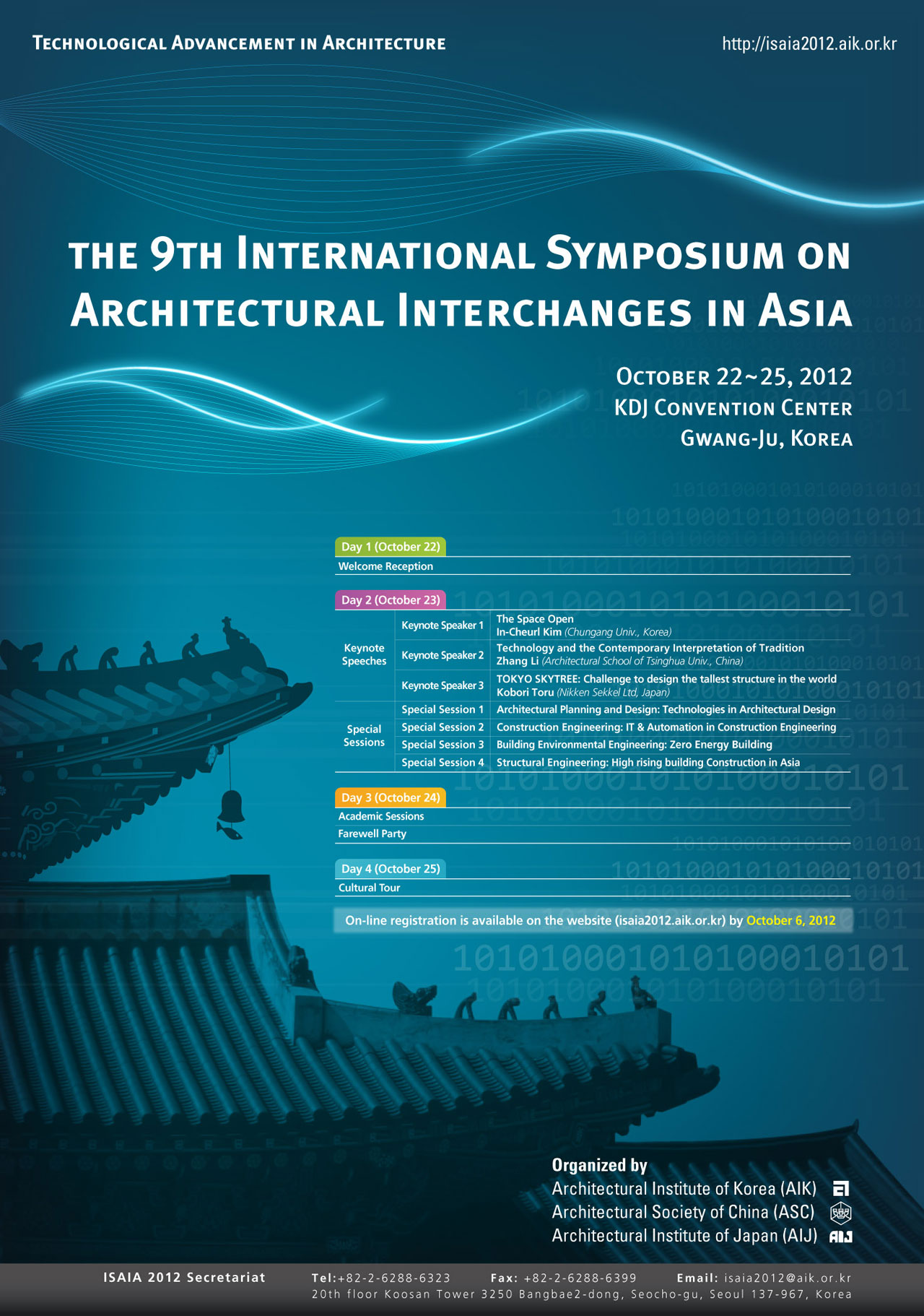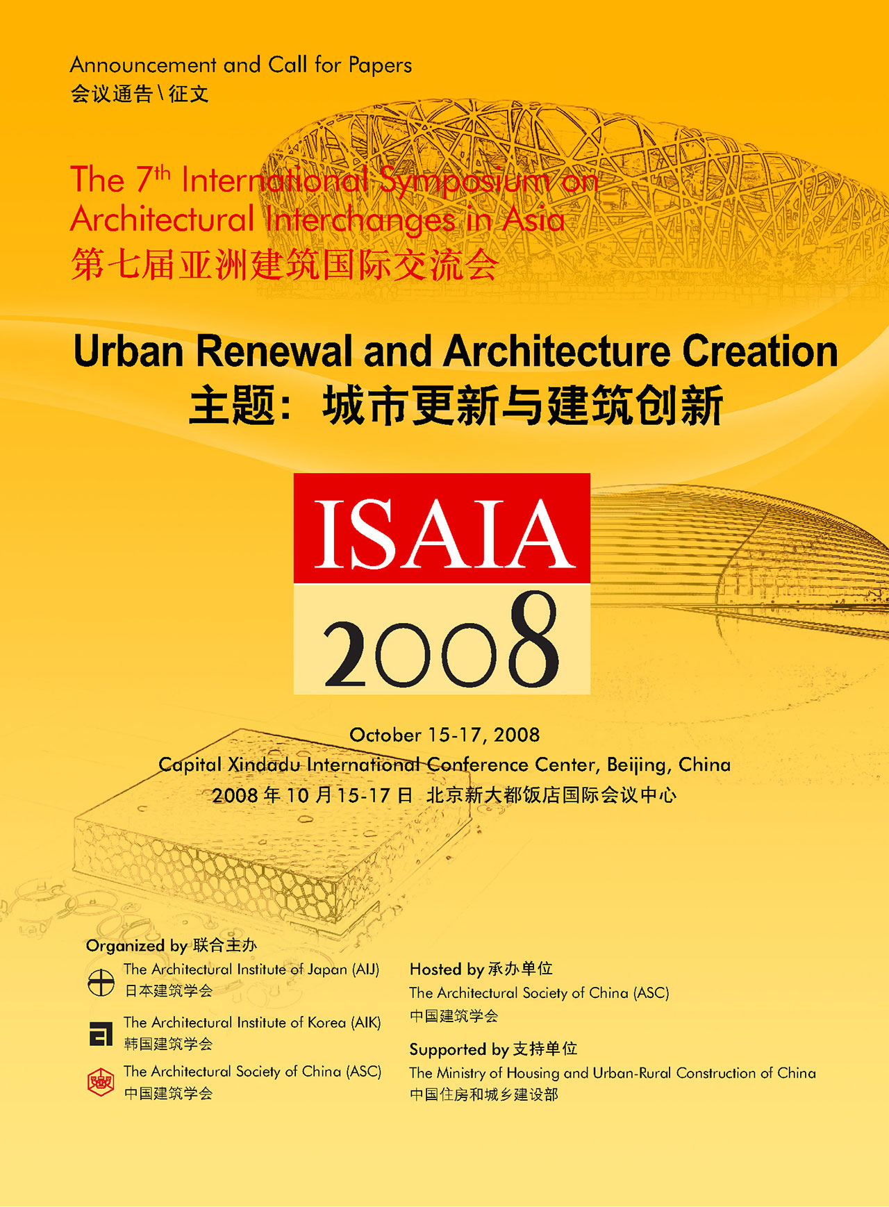 ¾Æ½Ã¾Æ°ÇÃà±³·ù±¹Á¦½ÉÆ÷Áö¾ö(International Symposium on Architectural Interchanges in Asia, ISAIA)Àº ´ëÇѰÇÃàÇÐȸ, ÀϺ»°ÇÃàÇÐȸ, Áß±¹°ÇÃàÇÐȸÀÇ °øµ¿ÁÖÃÖ·Î 2³â¸¶´Ù °³ÃֵǴ ±¹Á¦½ÉÆ÷Áö¾öÀÔ´Ï´Ù. º» ½ÉÆ÷Áö¾öÀº ¾Æ½Ã¾ÆÁö¿ªÀÇ °ÇÃà°¡, °ÇÃà°ü·Ã Àü°ø ±³¼ö »Ó ¾Æ´Ï¶ó ¿£Áö´Ï¾î, ¿¬±¸¿ø µî °ÇÃà¿¡ °ü½ÉÀÖ´Â ´ÙºÐ¾ßÀÇ Àü¹®°¡°¡ Âü¿©ÇÏ¿© Á¤º¸¸¦ °øÀ¯Çϰí ÀÖ½À´Ï´Ù.